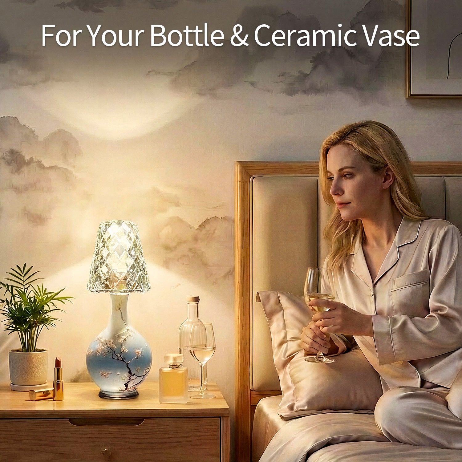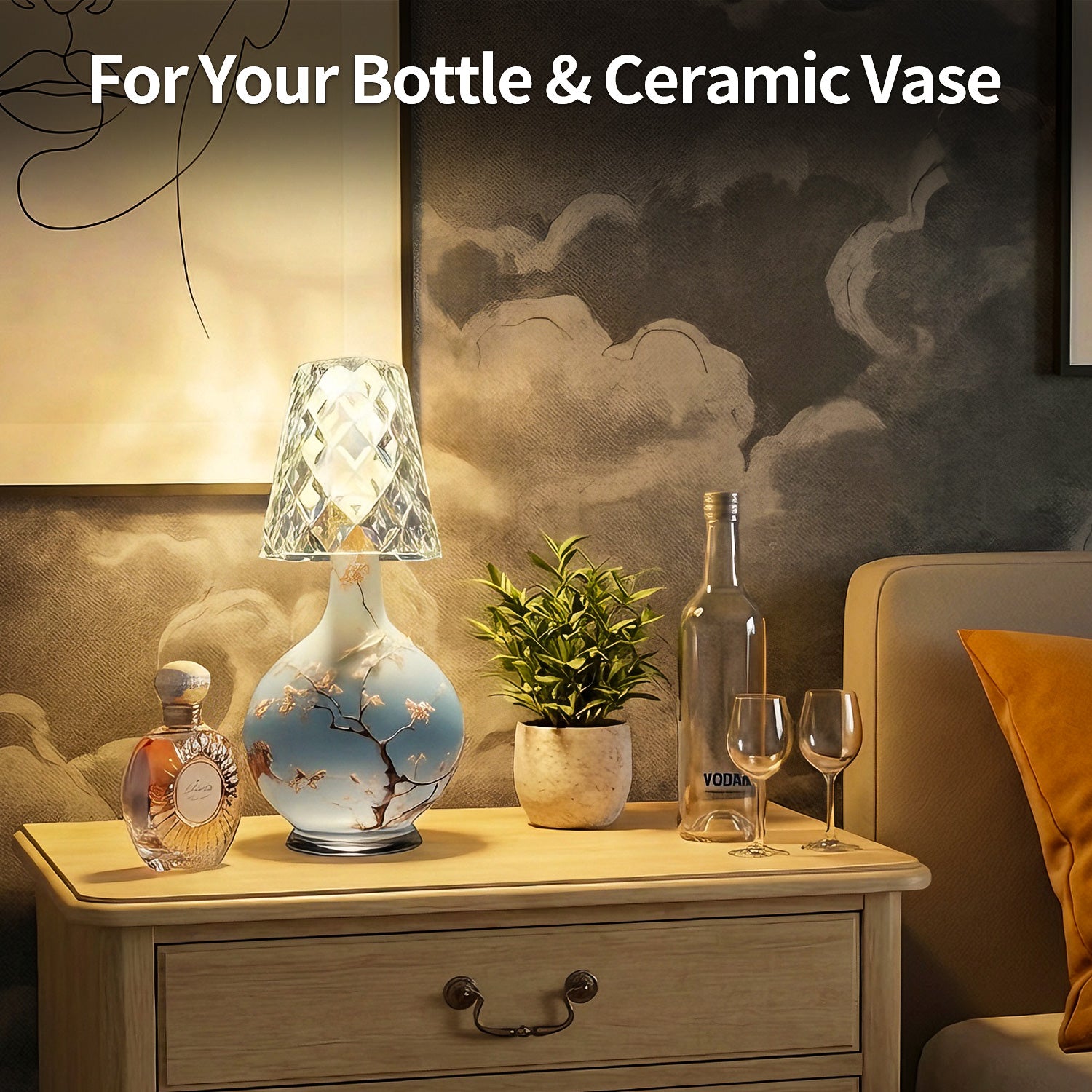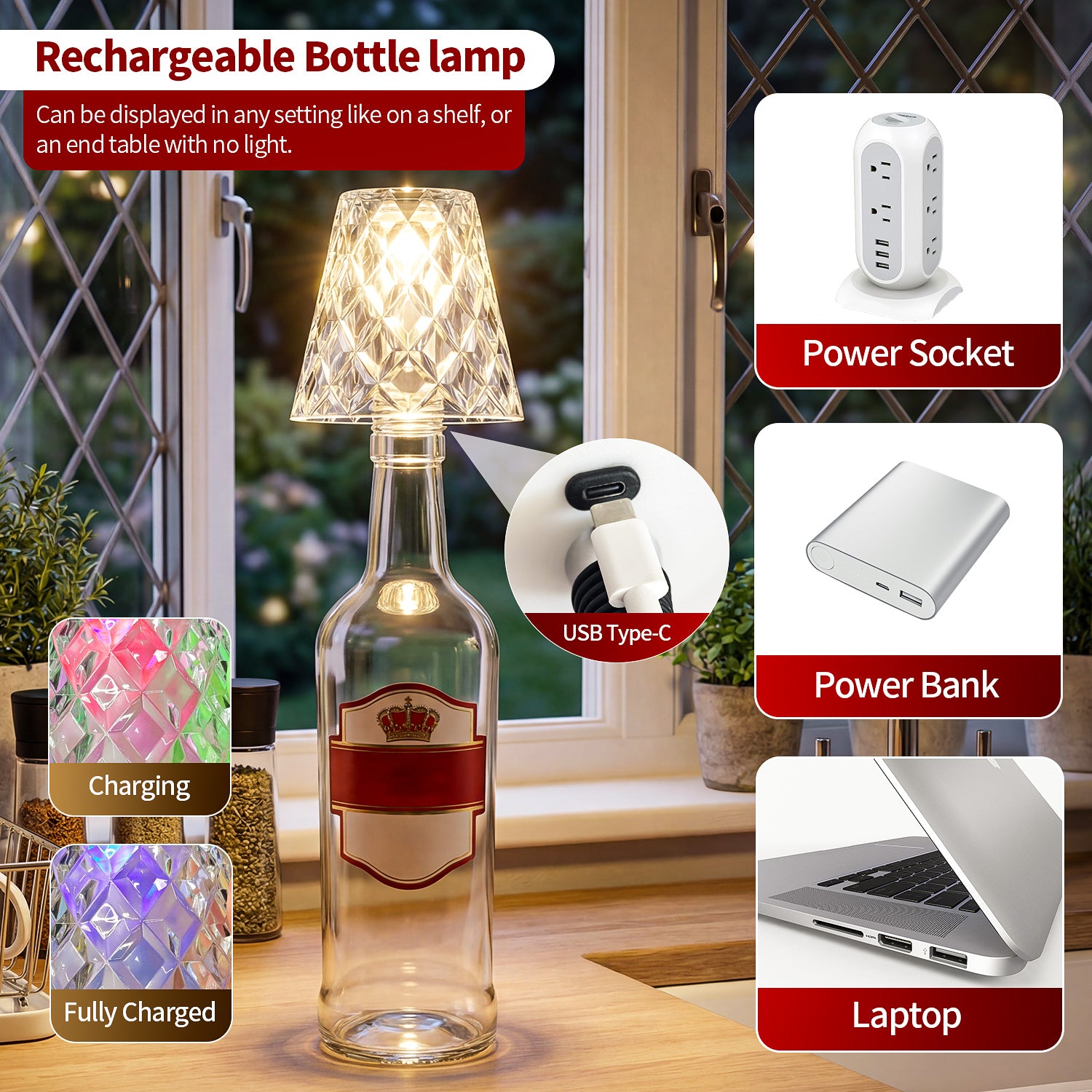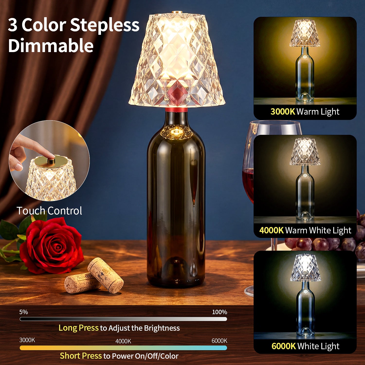 This review is for ONLYWIN Wireless Bottle Lamp USB Rechargeable with Crystal Lampshade, 3-Color Touch Control Bottle Light Smooth Dimming, Wine Bottle Lamp for Bar Dcor, Home, Kitchen & Party Lighting, 1-Pack.