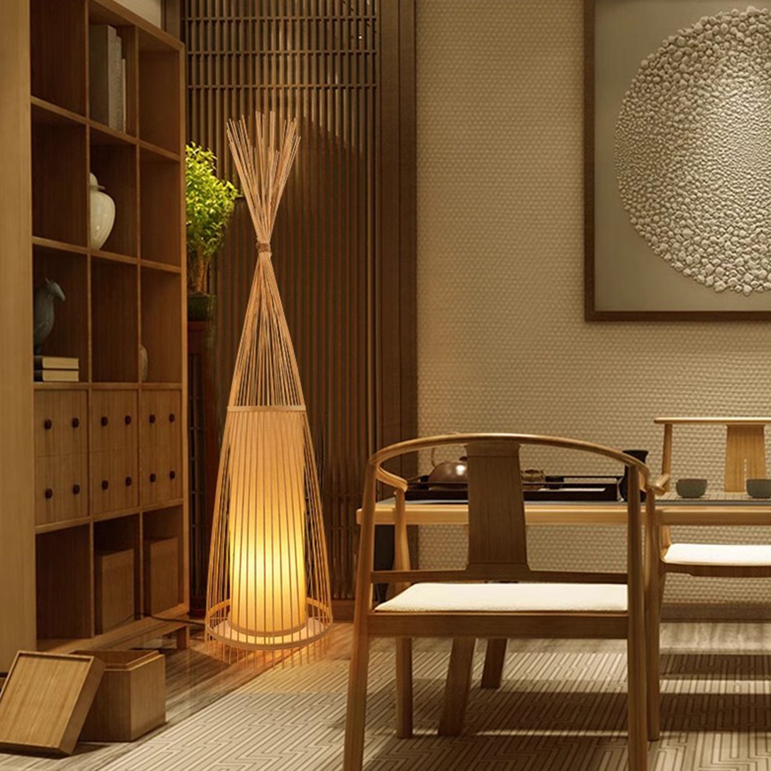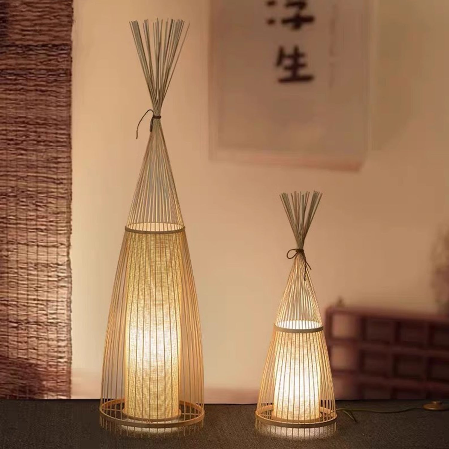 Handcrafted from sustainable bamboo and rattan/willow, our standing lamp embodies timeless elegance. Inspired by traditional Chinese design, it features delicate weaving patterns and a warm, natural hue. The lamp’s organic materials create a soothing ambiance, casting gentle light across your space. Perfect for adding a touch of serenity to any living or lounge room, this floor lamp celebrates craftsmanship and cultural heritage.