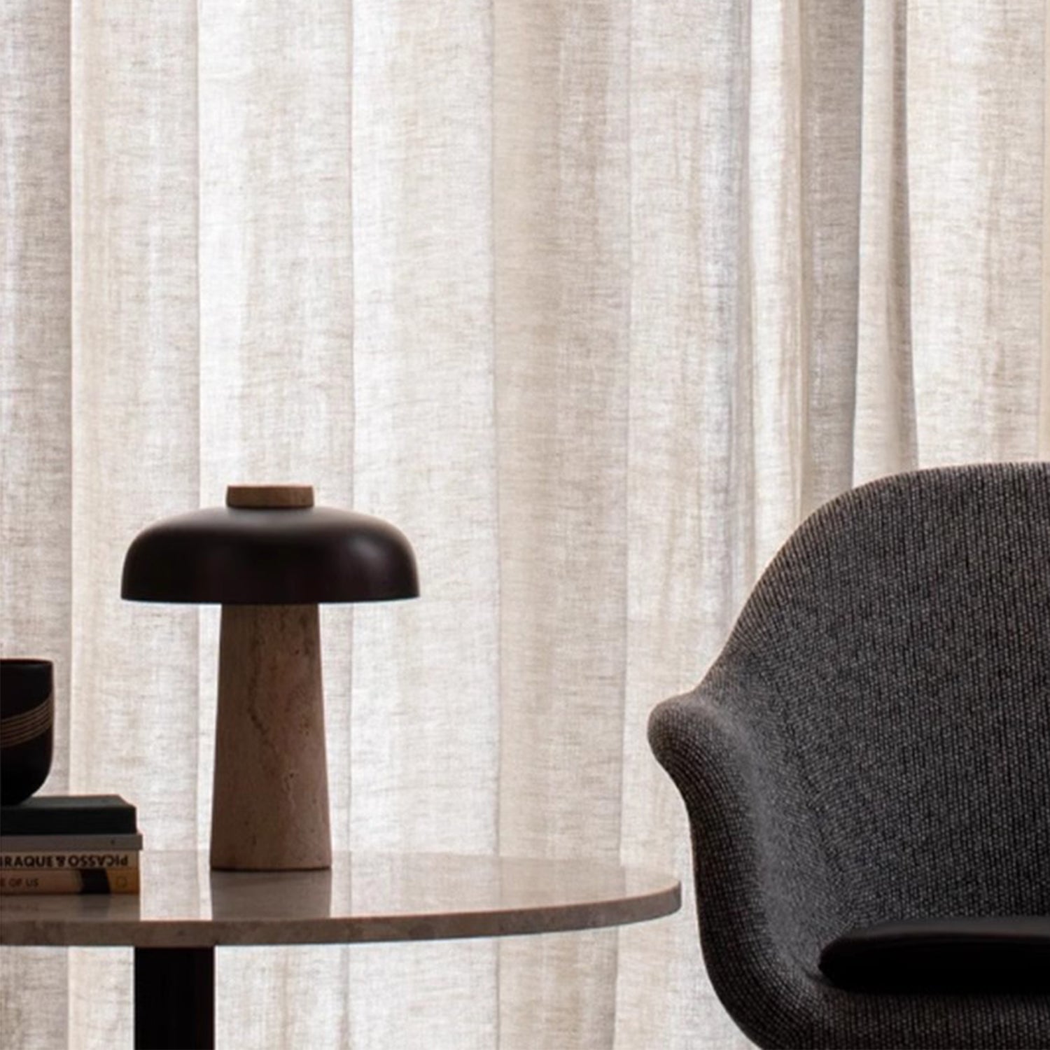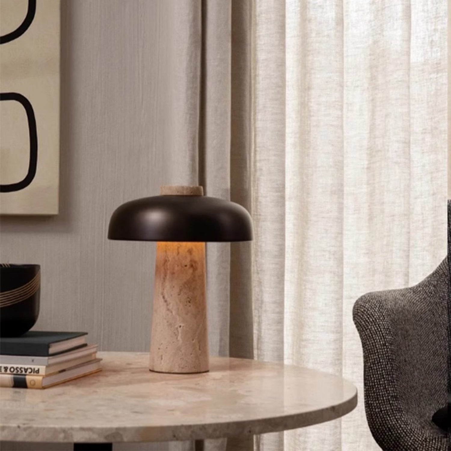 Настольная лампа MOOR добавит изысканности любому интерьеру в стиле ваби-саби или хюгге. Благодаря матово-чёрному абажуру и каменному основанию эта лампа добавит стиля и фактуры вашей современной гостиной, залу или спальне.