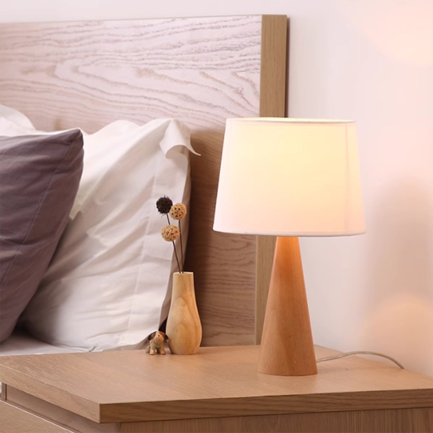 Осветите гостиную, спальню или рабочий стол нашей очаровательной настольной лампой с кремовым абажуром и выразительным деревянным основанием с тёплой отделкой под дуб. Эта скандинавская лампа создаст уютную атмосферу в вашей гостиной, спальне или гостиной.