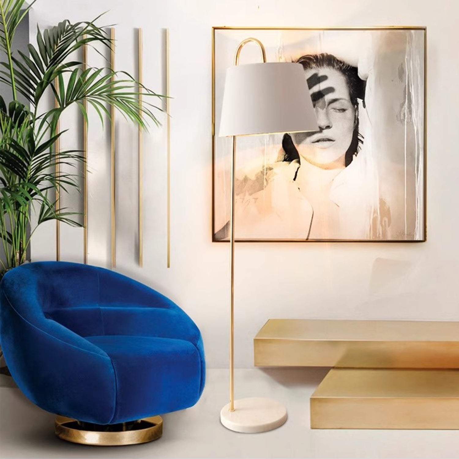 Освещение создаёт особую атмосферу в доме. Создайте уютный уголок, создав эффект «гостиничного номера» с помощью этого великолепного торшера в форме большого колпака. Его хромированный золотой внутренний ободок отражает тёплый свет и создаёт ослепительные блики, усиливая цветовую гамму вашего дома. Идеально подходит для современных и индустриальных интерьеров.