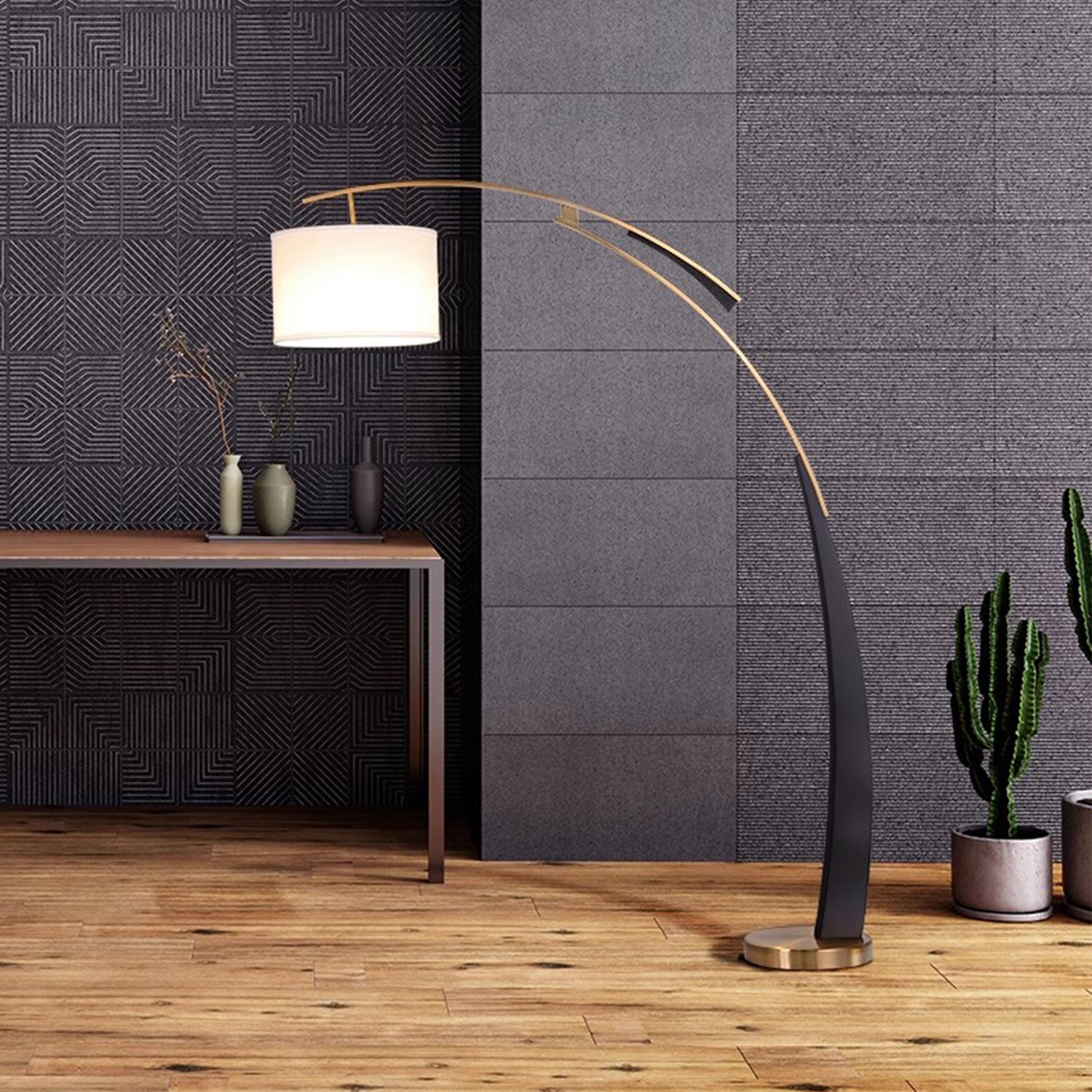 Изящный подвесной светильник FANGLE в форме дуги, выполненный в современном матово-черном и золотом цветах, изготовлен из прочного железа, а его колоколообразный кронштейн позволяет мягко освещать зону отдыха. Выбирайте теплую, прохладную и дневную температуру для создания различных интерьеров. Дополните интерьер нашим диваном BERLIN и ковром SAIGE, чтобы создать элегантную атмосферу.