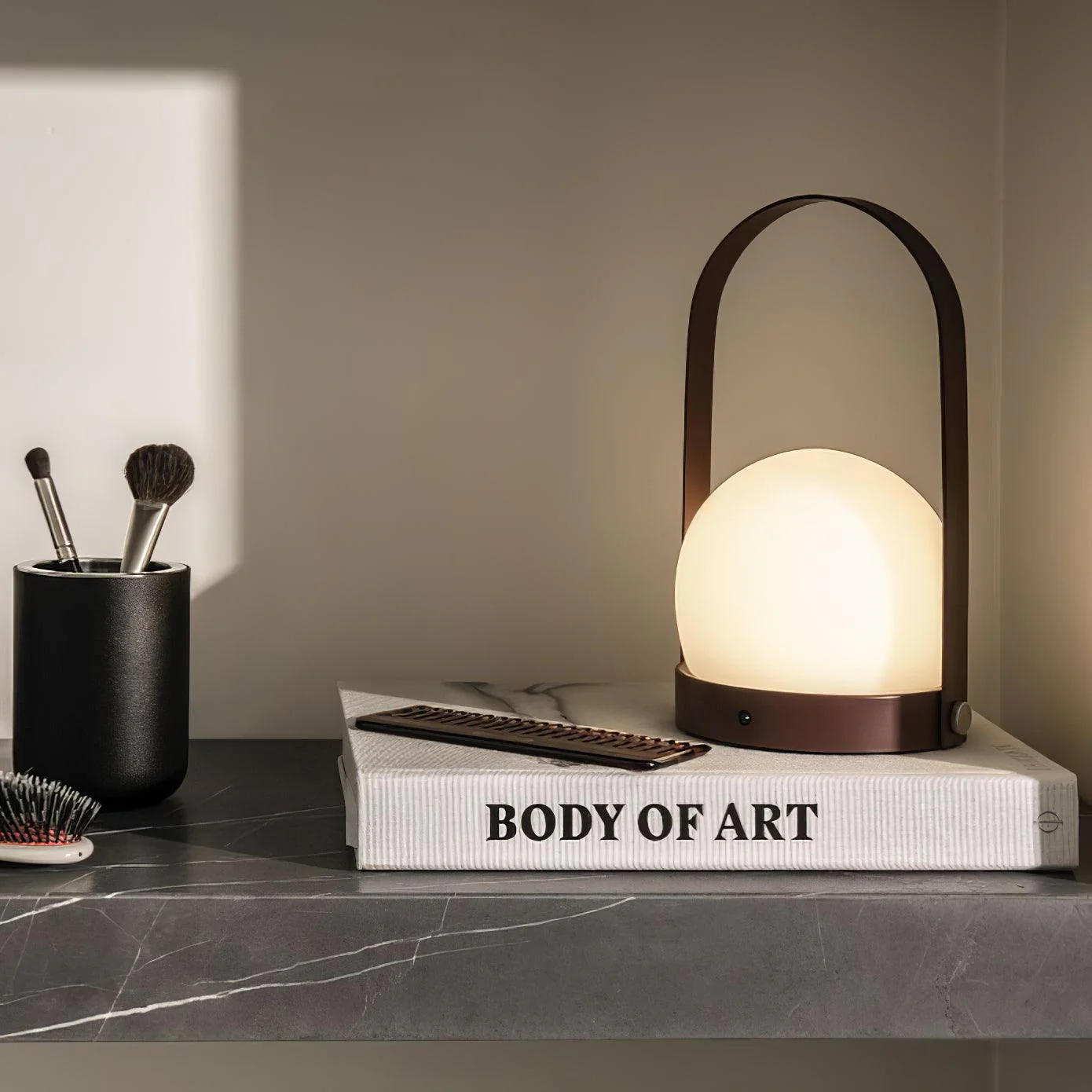 Удобство настольной лампы : настольная лампа Carrie с изящной ручкой и уютным шариком света, помещенным в основание в форме корзины, обеспечивает удобство в любом месте дома.